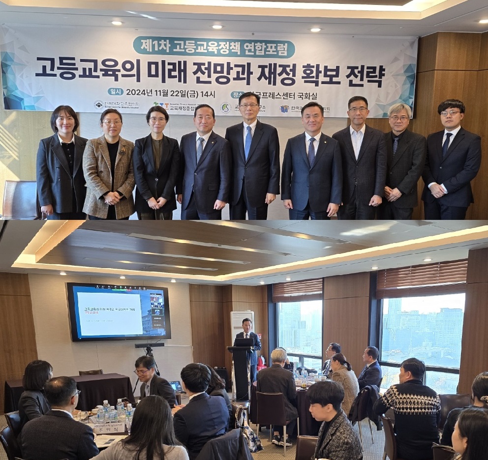 The Policy Research Team of the Research Institute of Higher Education at the Korean Council for University Education (hereinafter referred to as KCUE) hosted the 1st Joint Forum as part of the ongoing study, "Development Plan for Higher Education and Mid-to-Long-Term Financial Planning," which aims to establish stable mid-to-long-term financial resources for higher education.