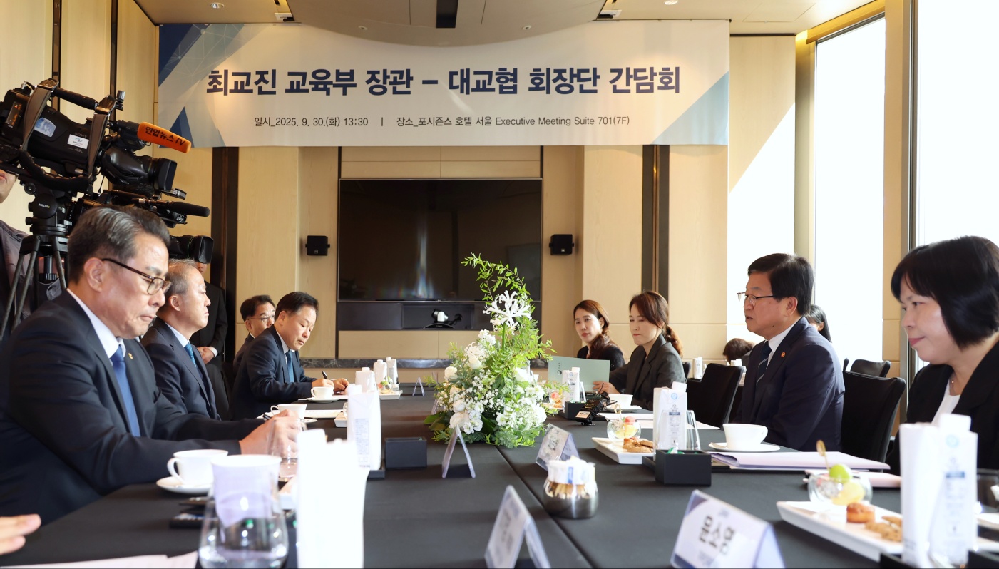 ❒ 한국대학교육협의회는 9월 30(화) 서울 종로구 포시즌스 호텔 7층 미팅룸에서 최교진 교육부 장관-대교협 회장단 간담회를 진행하였다.