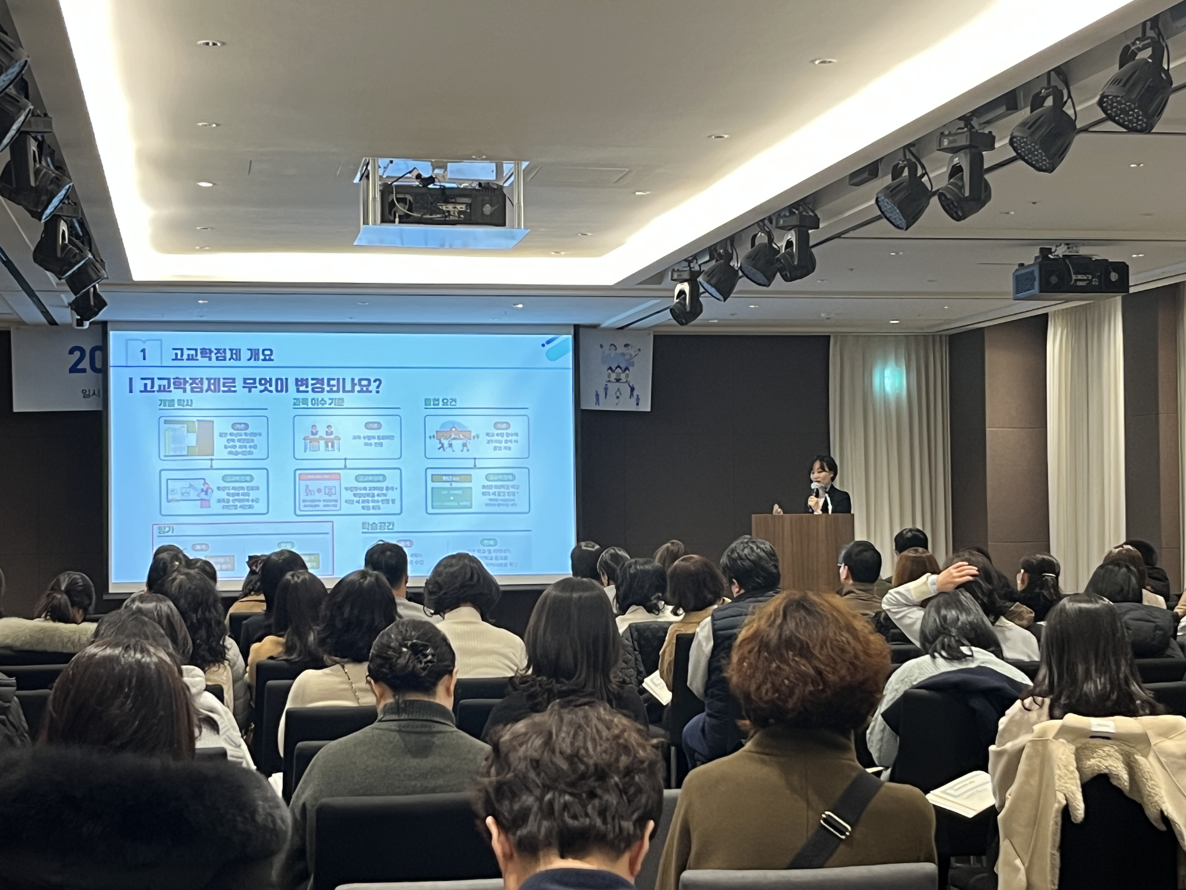 □ 이번 설명회에서는 교육부의 「2022 개정 교육과정 안내(고교학점제를 중심으로)」를 비롯하여, 조만기 대교협 대입상담교사(남양주다산고등학교)의 「2028학년도 대비 진학지도 방향 안내」와 건국대학교(김경숙 입학팀장, 이정림 입학팀 과장), 경희대학교(임진택 입학사정관팀장), 서울대학교(박준민 입학사정관)가 각 대학의 「2028학년도 전형 운영 계획 안내」를 발표하였다.