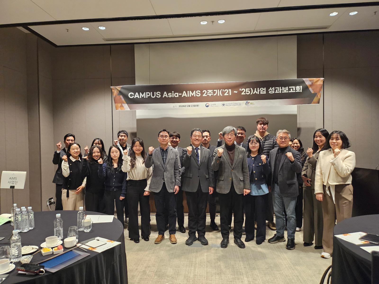 ❒ 한국대학교육협의회는 2월 23일(월) 서울 JW 메리어트 동대문 스퀘어에서 ‘CAMPUS Asia-AIMS 2주기 사업 성과보고회’를 개최하였다.