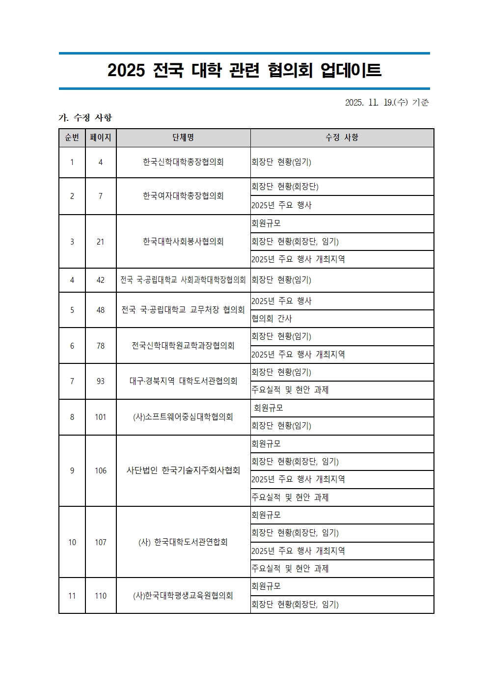 2025 전국 대학 관련 협의회 현황 (2025. 11. 19 기준)